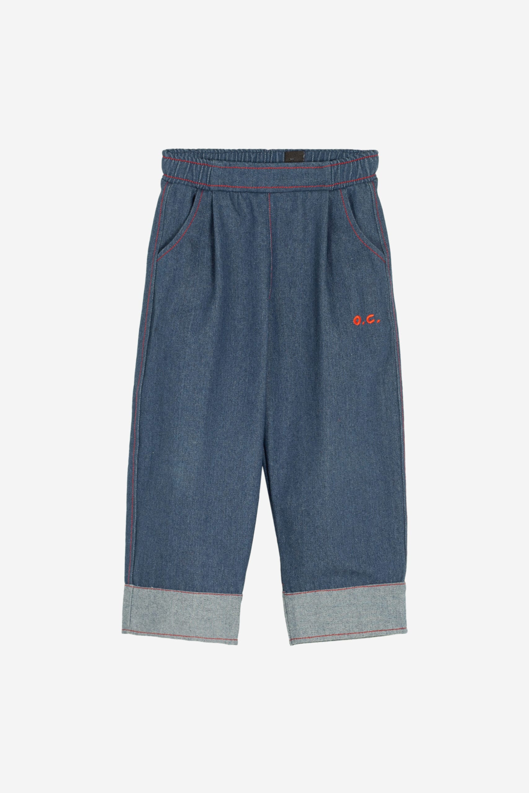 Šios unisex kelnės yra pagamintos iš minkšto džinsinio audinio, su išsiuvinėtu miniatiūriniu logotipu. Derink jas su džinsiniu švarkeliu, kad sukurtum vientisą miesto įvaizdį .Kelnės turi reguliuojamą juosmens juostelę