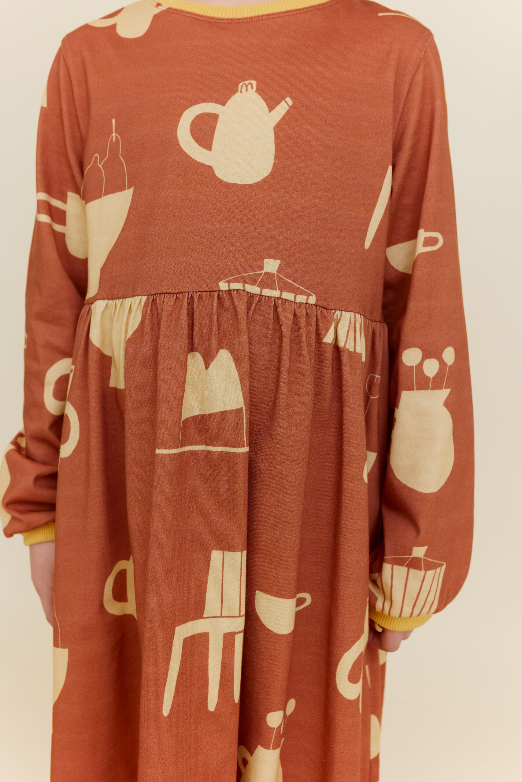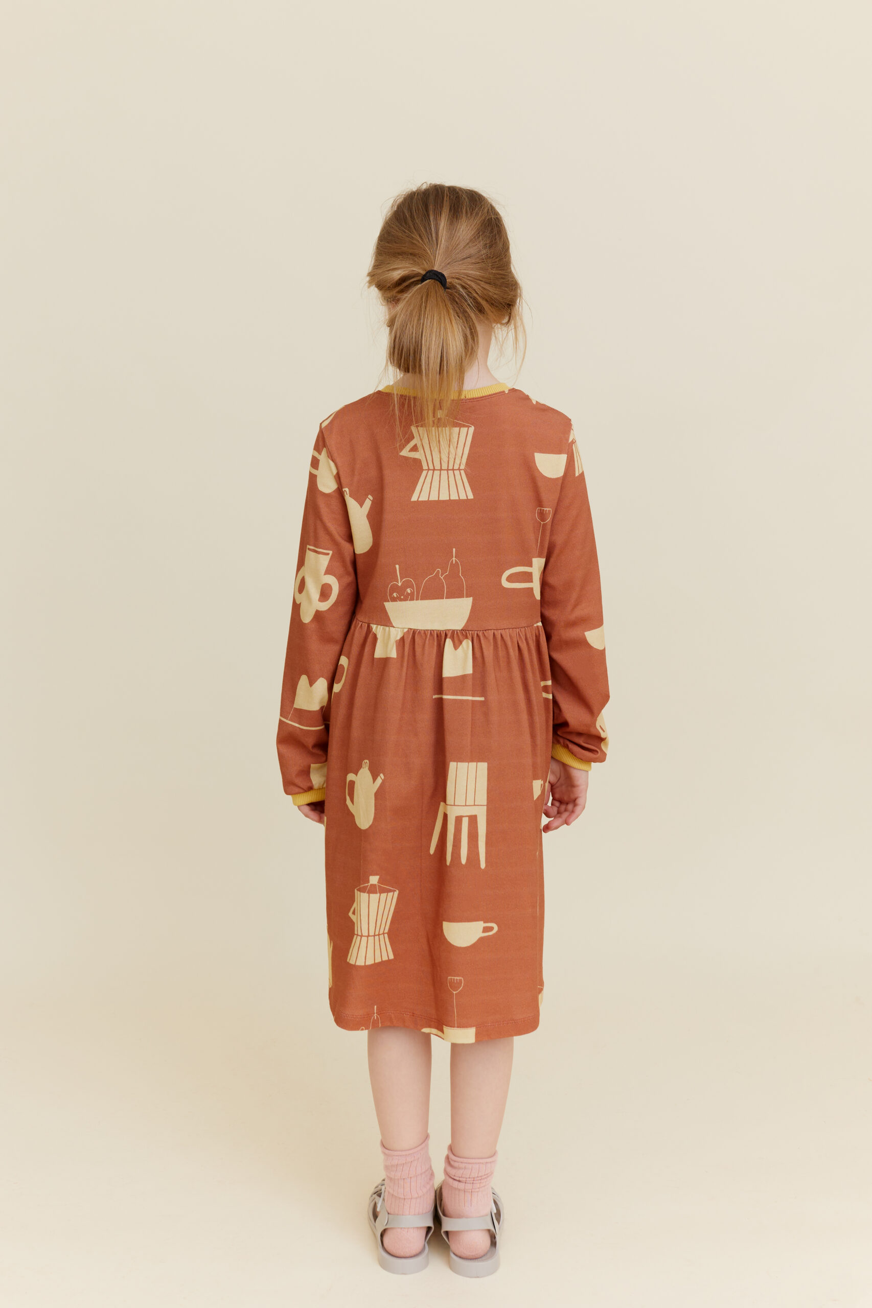 Ši suknelė yra pagaminta iš ekologiškos medvilnės su „Flea Market“ marginimu, puošta kontrastingos spalvos raukiniais apačioje. Rinkis ją pasivaikščiojimams mieste .