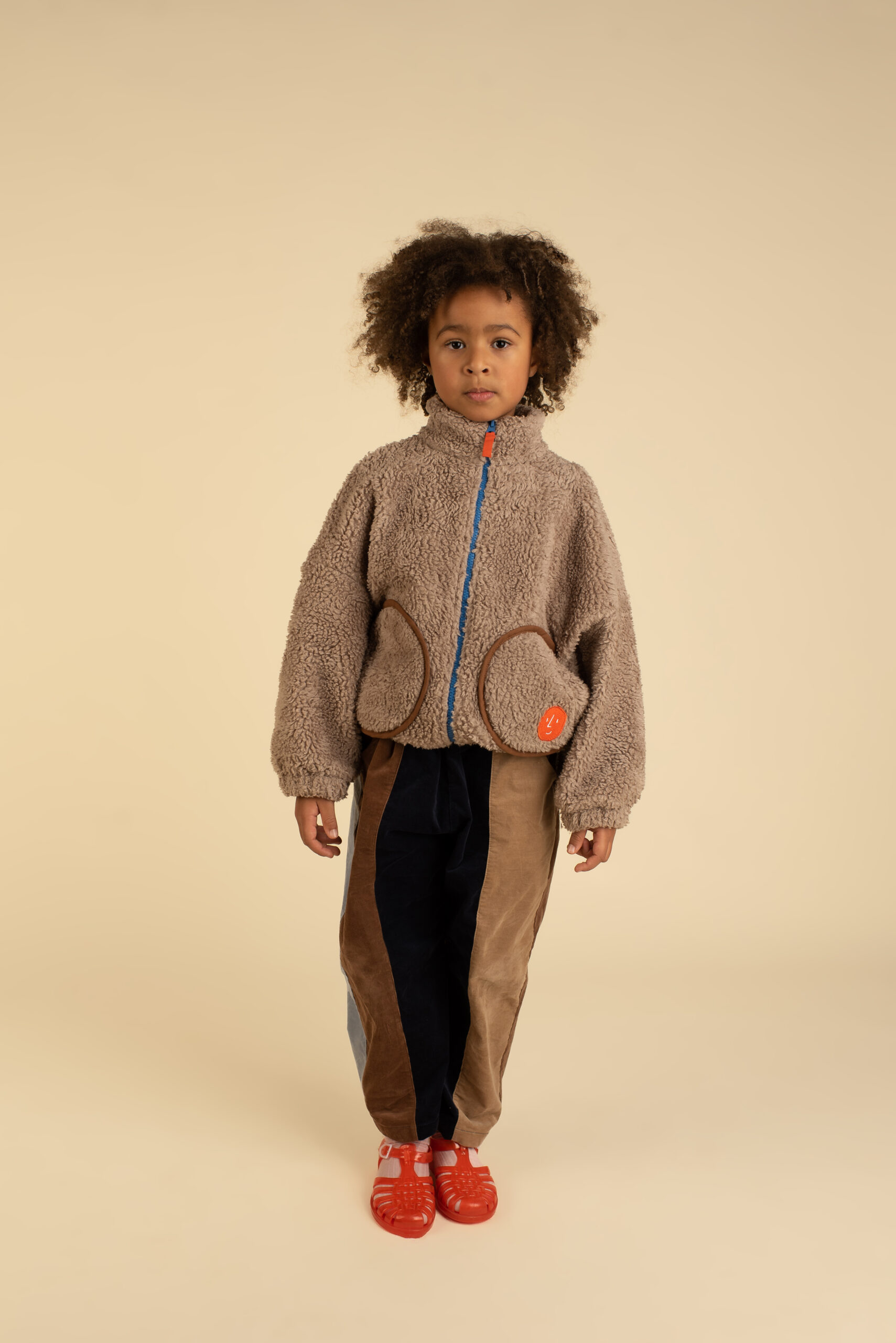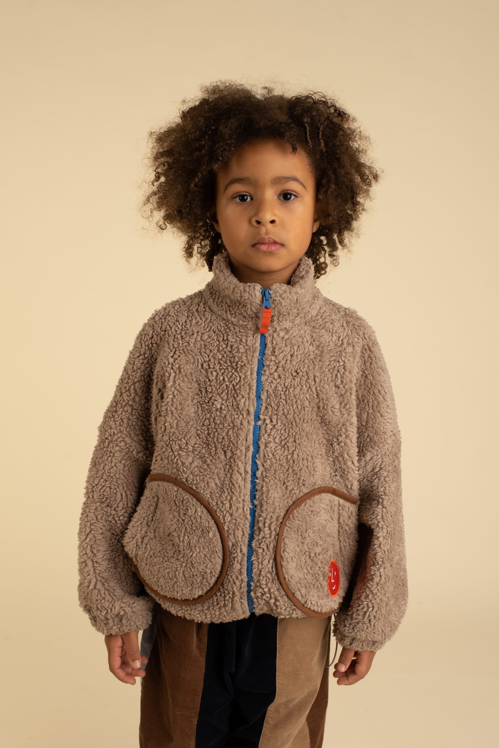 Švelnaus dirbtinio kailio švarkelis su didelėmis apvaliomis kišenėmis, kontrastiniu užtrauktuku ir OXOX CLUB bulvės ženkliuku. Šiltas, jaukus ir žaismingas — sukurtas nekasdieniškai kasdienybei.