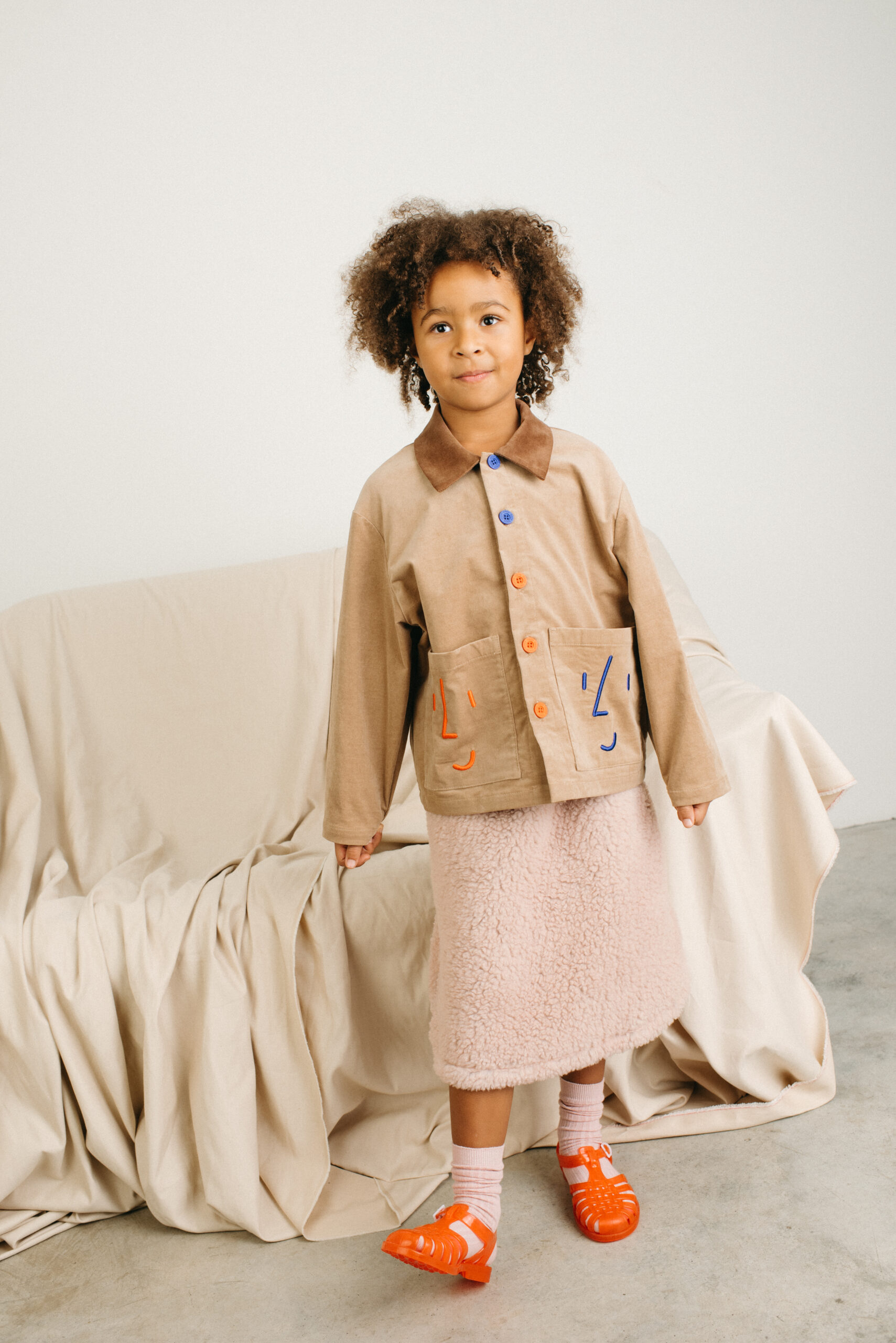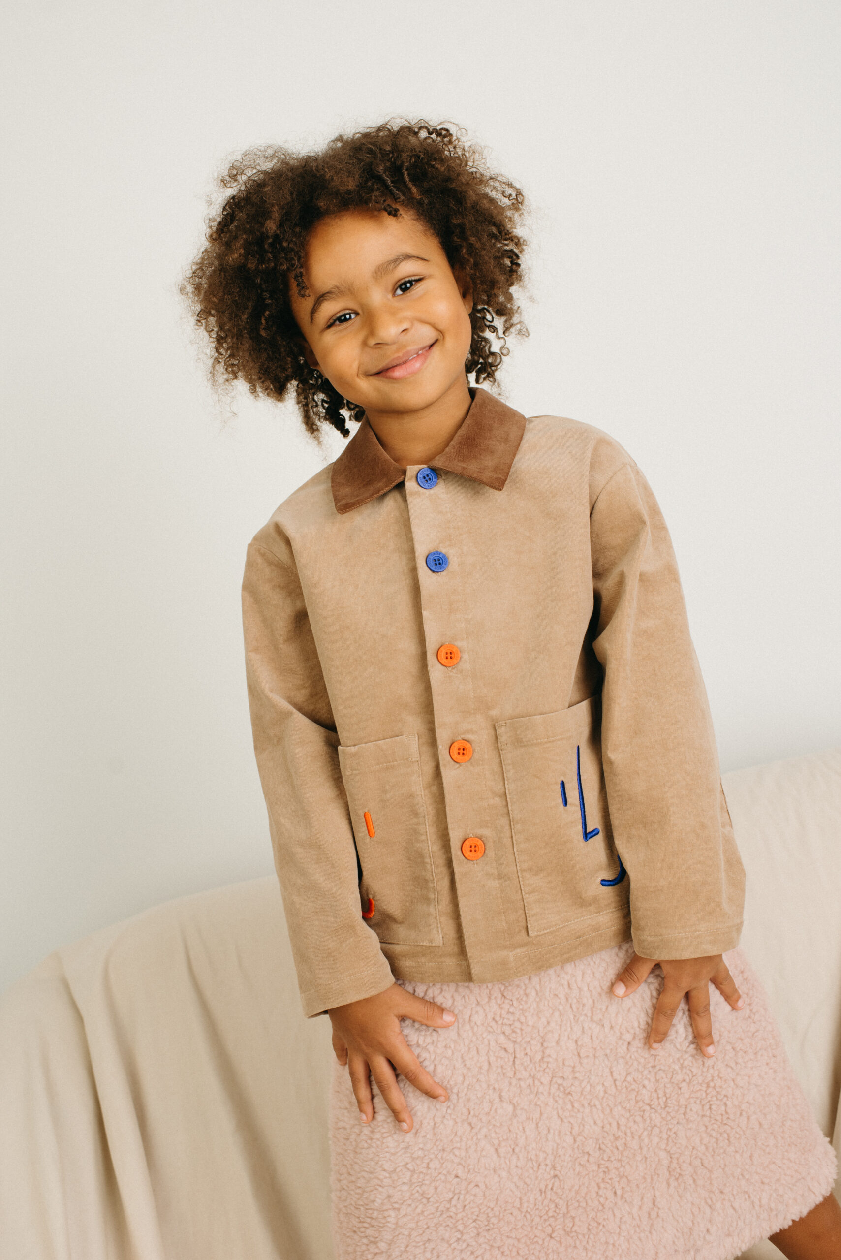 Šis velvetinis švarkelis – ryškiausias garderobo akcentas, kurį norisi vilkėti vėl ir vėl. Minkšto įvairių spalvų velveto detalės susitinka su žaismingais išsiuvinėtais veidukais ant priekinių kišenių – detalė, paliekanti didelį įspūdį. Sukurtas kasdieniams nuotykiams, lengvai sluoksniuojamas su marškinėliais ar megztiniais ir akimirksniu suteikiantis charakterio betkuriam deriniui.